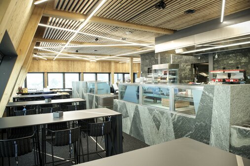 Das Restaurant zählt 60 Sitzplätze, ist rollstuhlgerecht und erfüllt höchste ökologische Standards. Serviert werden internationale Gerichte ebenso wie Schweizer Spezialitäten. Eine ordentliche Stärkung ist besonders wichtig, um genug Energie für die Abenteuer zu tanken, die es draussen zu erleben gilt. Wer vorher noch regionale Souvenirs ein Souvenir besorgen möchte als Erinnerung oder Mitbringsel, findet eine grosse Auswahl im angrenzenden integrierten Peak Shop.“