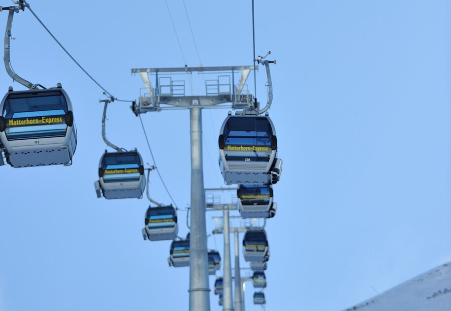 The start of operation of the Matterhorn-Express between Zermatt and Schwarzsee was with a total of 154 cabins (OMEGA III model). More cabins were then ordered in 2009 for the extension of the gondola lift from Schwarzsee via Furgg to Trockener Steg.