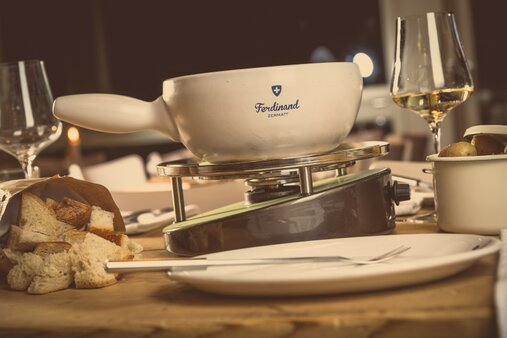 Un air de fraîcheur pour la cuisine traditionnelle valaisanne. Chez Ferdinand, seuls des produits suisses sont utilisés - la plupart d'entre eux provenant même du Valais. Si vous aimez le fromage, vous adorerez la fondue et la raclette. Et les nombreuses et délicieuses spécialités valaisannes ne manquent jamais de vous surprendre. L'intérieur contemporain du chalet montre le côté moderne de l'esthétique des montagnes de Zermatt. Le plaisir est omniprésent.