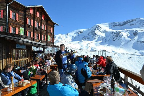 Situé à 2606 m d’altitude, le restaurant de montagne Fluhalp est niché au cœur du domaine de ski et de randonnées de Sunnegga-Blauherd-Rothorn (aussi accessible à pied, en hiver).