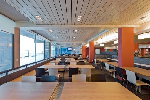 C’est dans un cadre à la fois convivial et moderne que l‘‘établissement vous propose une carte variée, des traditionnels rösti suisses, à la poêlée géante de macaronis du chalet en passant par de délicieuses spécialités asiatiques.