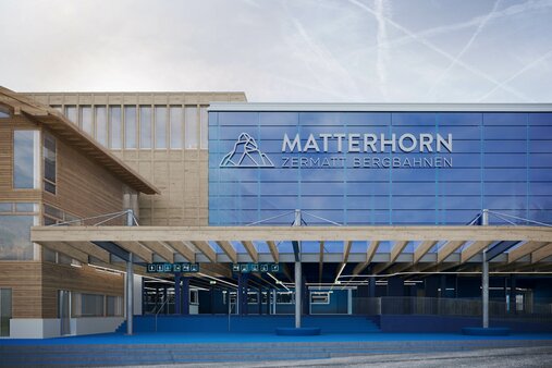 Avec le projet de la nouvelle téléphérique de Zermatt à Furi, un nouveau bâtiment est également en construction à la station inférieure de Schluhmatte en direction du Matterhorn Glacier Paradise. Le nouveau bâtiment offre un espace généreux pour un flux optimal des visiteurs, des guichets modernes et un allégement de la route. La belle architecture avec une lucarne au milieu du bâtiment allie flair contemporain, haute fonctionnalité et durabilité au standard Minergie-P. Des espaces spacieux pour les casiers à skis sont également prévus pour un rangement confortable de l'équipement de ski. De plus, au début de 2024, un comptoir de bagages moderne sera créé, où les clients du Matterhorn Alpine Crossing pourront confortablement déposer leurs bagages de voyage, tout comme à l'aéroport, pour commencer leur voyage en Italie en n'ayant que des bagages à main.