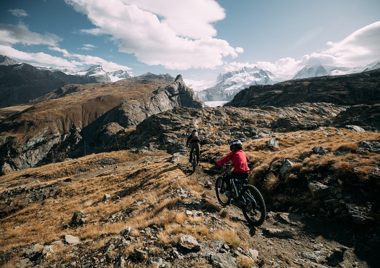 L'autunno è ideale per fare delle escursioni ... No, L'autunno è ideale per andare in MTB a più non posso! Dalla mattina presto al tramonto: salire in alto, affrontare ripide discese, raggiungere veloci la meta, vicini al Cervino: gli appassionati della MTB amano spingersi al limite. L’aspra cornice alpina attorno a Zermatt è come predestinata per sfide su due ruote.