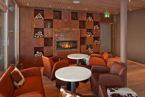 Bei schlechtem Wetter bietet sich die Möglichkeit, sich drinnen bei einem heimeligen Cheminée-Feuer aufzuwärmen.