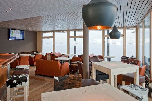 Die Lounge liegt direkt neben der Bahnstation Blauherd und ist zu Fuss oder mit Skis erreichbar.