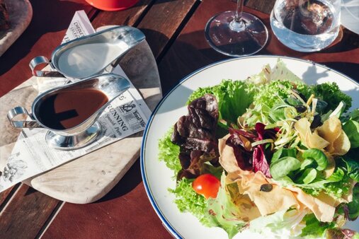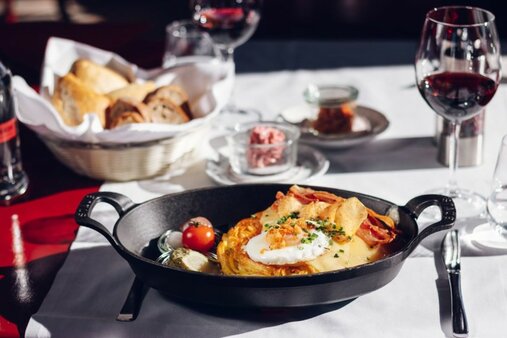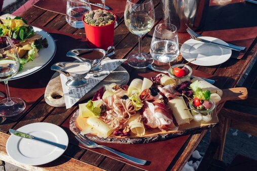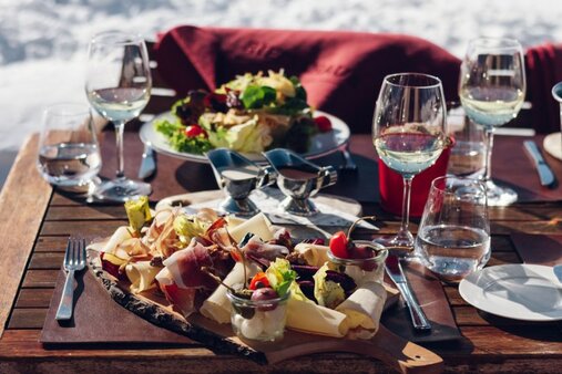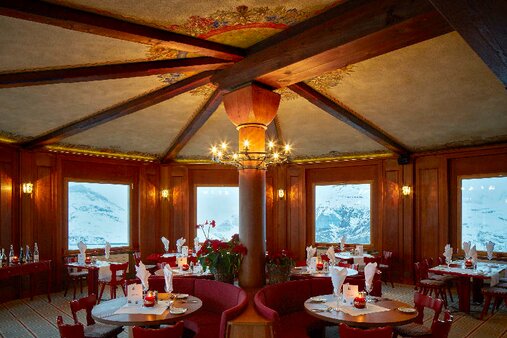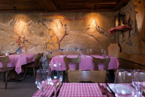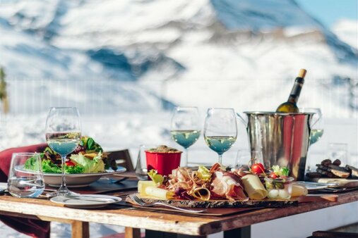 Die Küche im Hotel Riffelhaus ist bodenständig und schmackhaft. Schweizer Spezialitäten spielen auf der Karte die Hauptrolle. In der Lounge oder im Skistübli trifft man sich zum Apéro, wenn Frau Holle ganze Arbeit leistet.